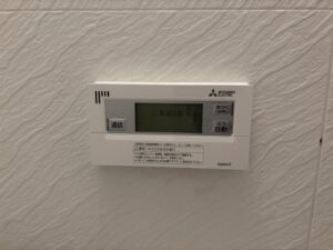 施工後の写真1枚目では、裏口付近に設置されたMITSUBISHI製エコキュート本体が確認できます。寒冷地でも安定した給湯性能を発揮し、新潟市の冬でも安心して使用できる仕様です。写真2枚目では、浴室内のリモコンが新品のMITSUBISHI製に交換され、視認性と操作性が大きく向上しました。